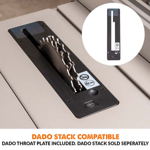 - Integrated cross-cut sled for improved workpiece stability and safety.