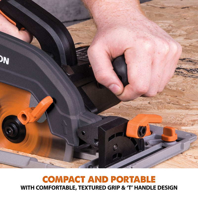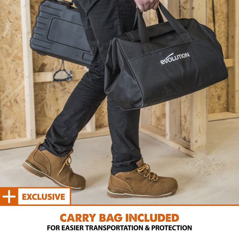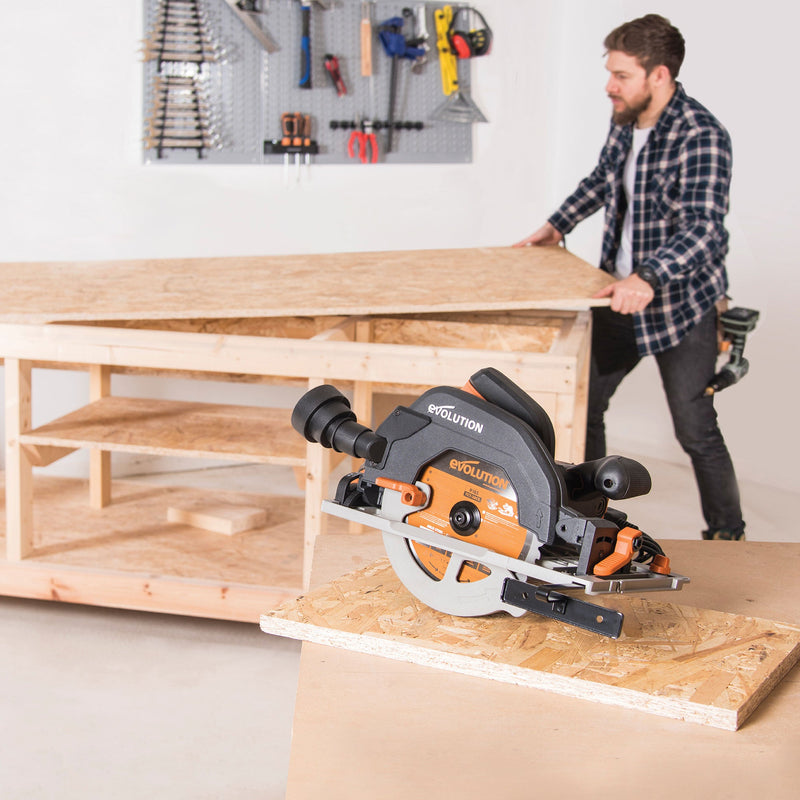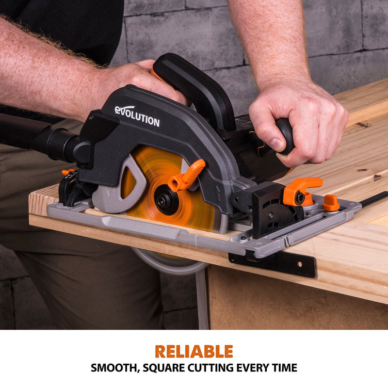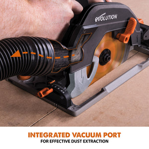 The ultimate multi-material cutting circular saw. Designed by the professionals for the professionals. The R185CCSX+ model gives you extra functionality, extra support and extra reach than any other Evolution circular saw in the family. Integrated LED light, channelled air-flow, 13 ft cable, storage bag and compatibility with Evolution's 4 ft 7 in track, are just some of the features included in this package. (Track sold separately)