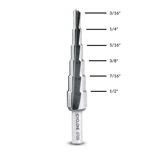 Evolution SD-6: 3/16 to 1/2 in. Straight Flute Step Drill$28.00$28.00SD-6: (6 Hole Sizes) Two Flutes 1/4" Shank3/16", 1/4", 5/16", 3/8", 7/16", 1/2" Evolution Premium Step Drills are made from the same high-quality ...