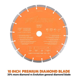 | Evolution 10 in., Segmented Edge with High Diamond Concentration, 1 in. Bore, Premium Diamond Blade (PD255SEG-CS) |