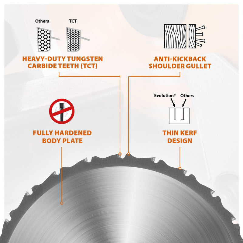 Evolution saw blades are designed to deliver maximum performance by using the highest grade carbide, hardened blade bodies & ultra high-grade brazing techniques. All offer premium quality to increase production & performance!