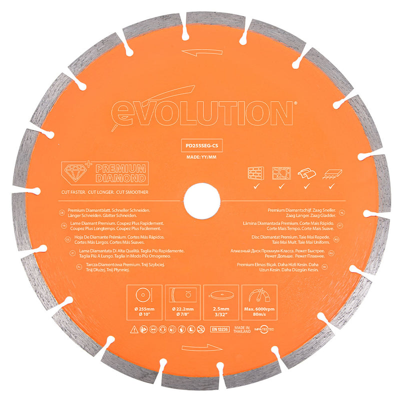 Evolution PD255SEG-CS | 10 in. | 7/8 in Arbor | High Diamond Concentration | Segmented Diamond Blade