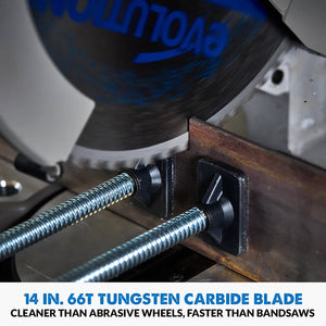 Built for professionals, the S355MCS Mitering Chop Saw from Evolution is the first 14” TCT industrial Chop Saw that allows you to produce accurate miter cuts without having to reposition the workpiece.