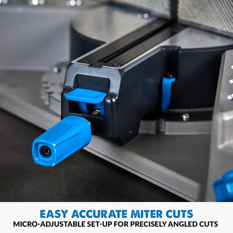 - It delivers precise and quick angle adjustment for easy set-up and a powerful clamping mechanism to ensure quality, repeatable cuts every time.