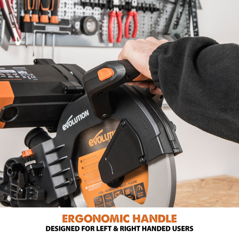 Evolution R255SMS-DB: Dual Bevel Sliding Miter Saw With 10 in. Multi-Material Cutting Blade