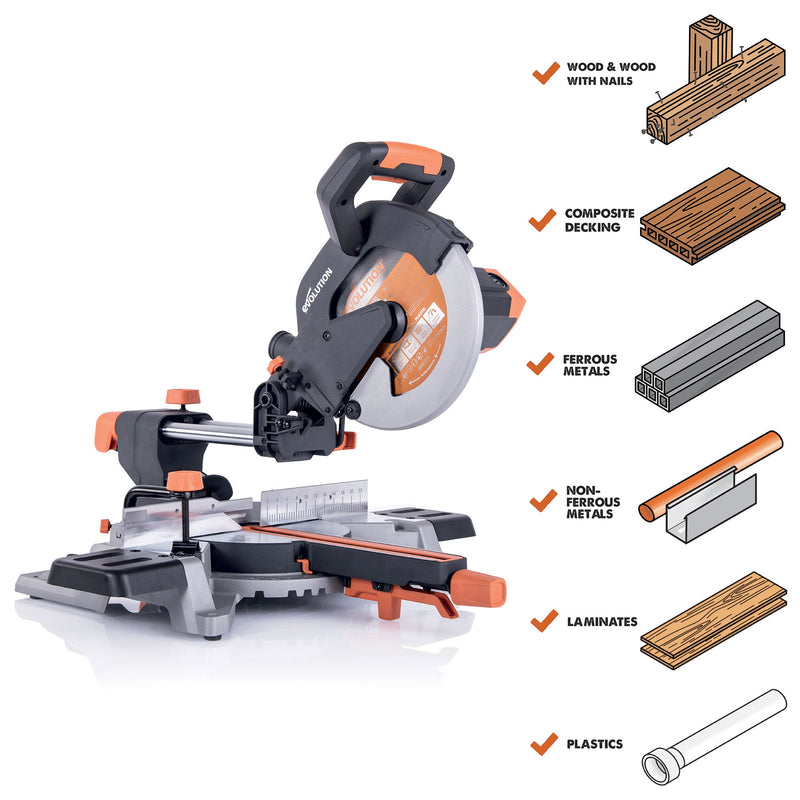 Evolution R255SMSL: Sliding Miter Saw With 10 in. Multi-Material Cutting Blade (Refurbished Like New)