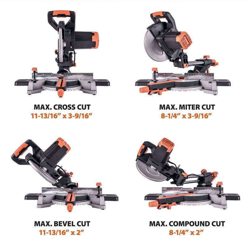 | Max. Compound Cut (45° x 45°): | 8-1/4 x 1-3/4 in. |
