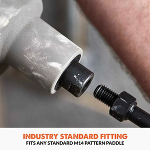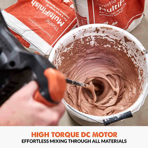 The Evolution R120MXR-Li Cordless Paddle Mixer leaves other mixers in the dust. With a high-torque DC motor, Li-ion battery power, forced air cooling and a soft-start motor controller it’s designed to run and run, mix after mix. Supplied with a 4-3/4 in Multi-Mix paddle the Evolution Cordless Mixer is compatible with any M14 threaded paddle up to 5-1/2 in and will blend its way through plaster, paint, mortar, cement, epoxy, tile adhesive, and so much more.
