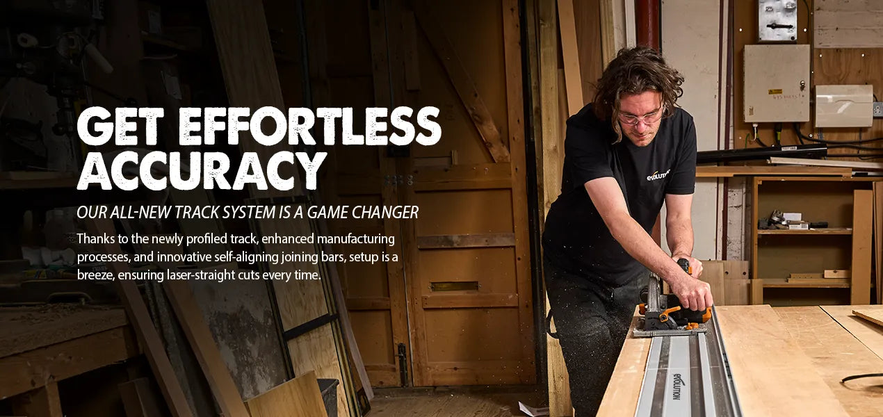 The next generation ofEvolution Circular Saw Tracksare here.Precision-engineered for absolute accuracy, these tracks are CNC-finished for perfectly square edges and featurepatent-protected, self-aligning connector barsthat ensure straight cuts across multiple joined tracks.