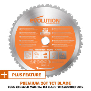 • Compatible with Evolution's Mitre Saw Stand, perfect for accurate repeat cutting.