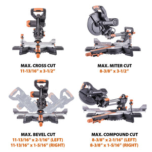 Max. Miter Cut (45° x 0°): 8-3/8 x 3-1/2 in.